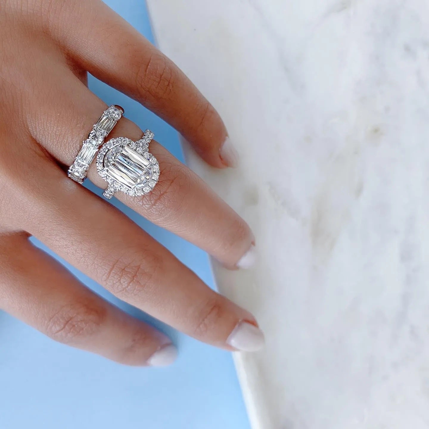 - Halo Engagement Rings: Brilliantly encircled by smaller diamonds to amplify the center stone’s sparkle.