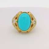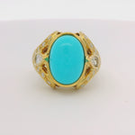 Estate 18k Yellow Gold Turquoise, Moonstone, and Diamond Ring