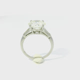 Exude elegance and timeless beauty with this Platinum Round Brilliant Cut Diamond Engagement Ring—an extraordinary symbol of love and commitment. Crafted with precision and sophistication, this ring features a stunning 3.59-carat round brilliant cut diamond at its heart, flanked by two sleek tapered baguette diamonds. Together, these dazzling stones create a classic design that will forever captivate your heart.