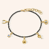 Monica Rich Kosann 18k Yellow Gold & Black Steel Luck Charm Bracelet