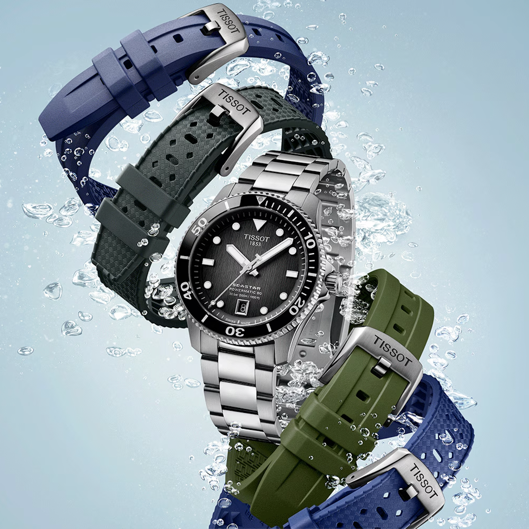 The Tissot Seastar merges style and performance without compromising either. The diving inspiration shapes both the appearance and the functionality of this watch. It maintains its performance to a pressure of at least 30 bar (300m/1'000ft), combining underwater sports and a preference for a sophisticated Swiss timepiece.
